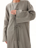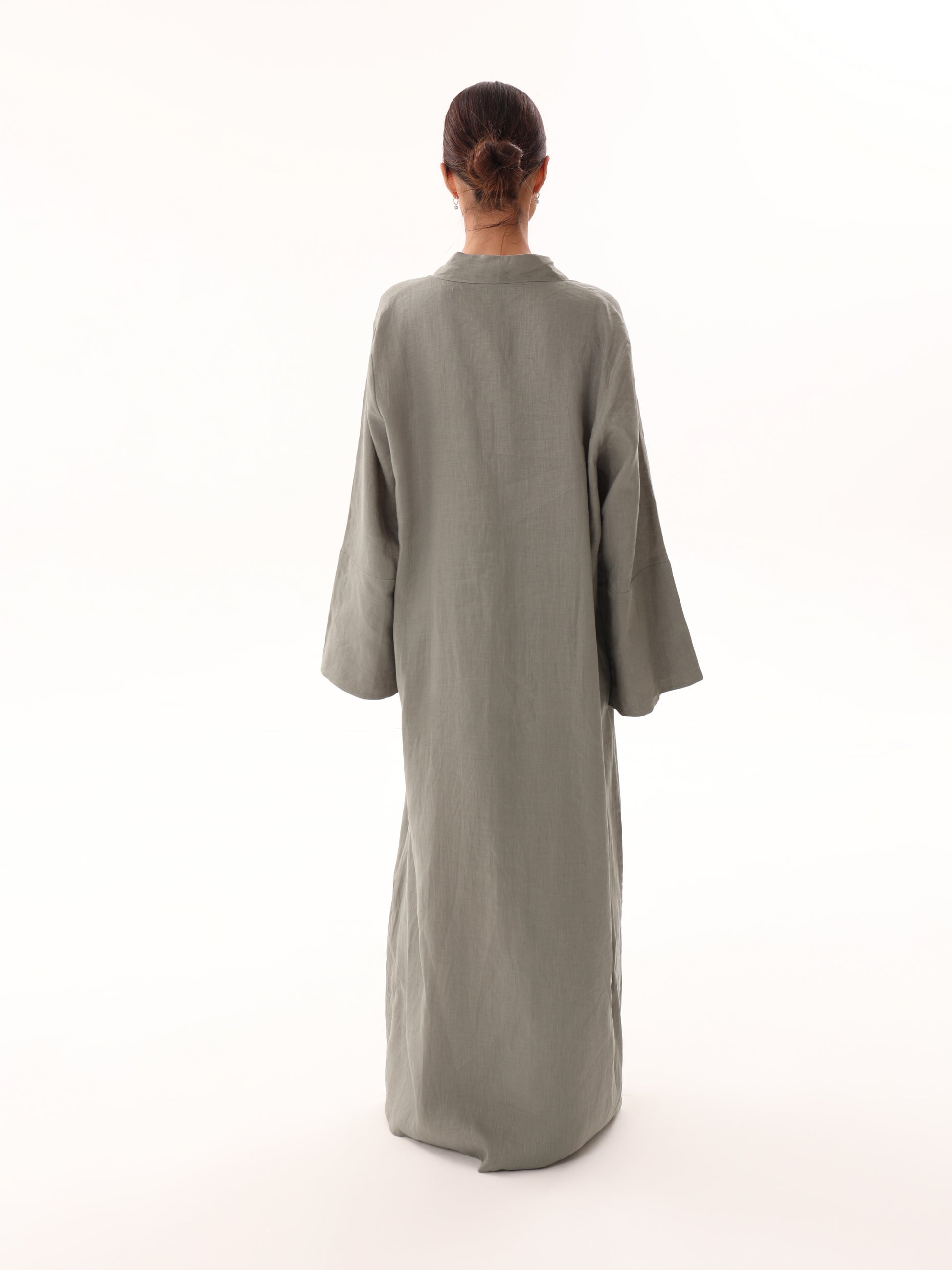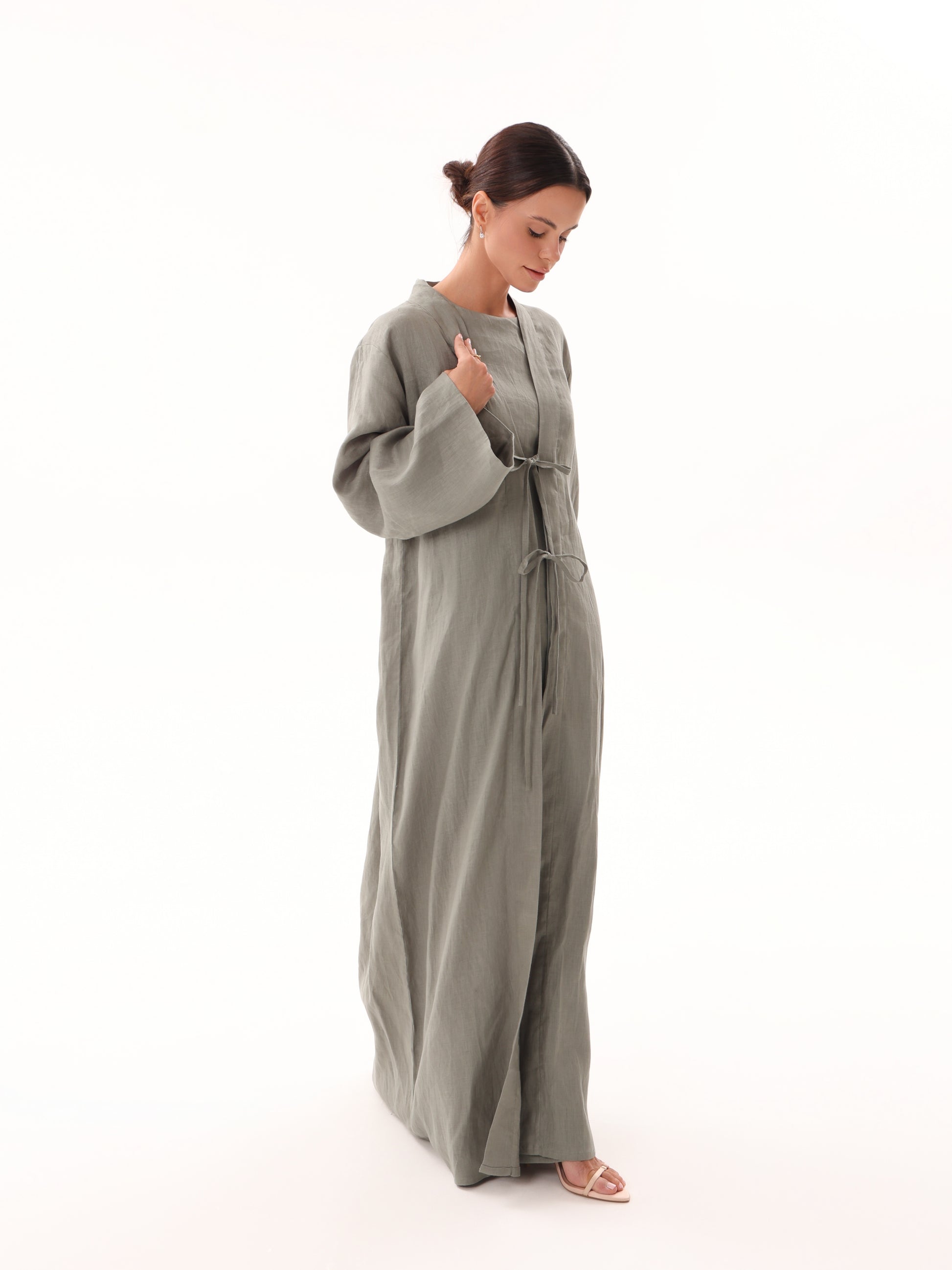 Elevate your summer wardrobe with our effortlessly elegant Abaya, crafted from 100% pure linen for ultimate breathability and comfort. Designed with a relaxed silhouette and charming bow-tie closures at the front, this piece transitions seamlessly from casual daytime wear to a polished evening look. Coordinates beautifully with our matching linen tops and trousers. Build multiple chic outfits from a single wardrobe.
