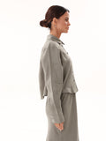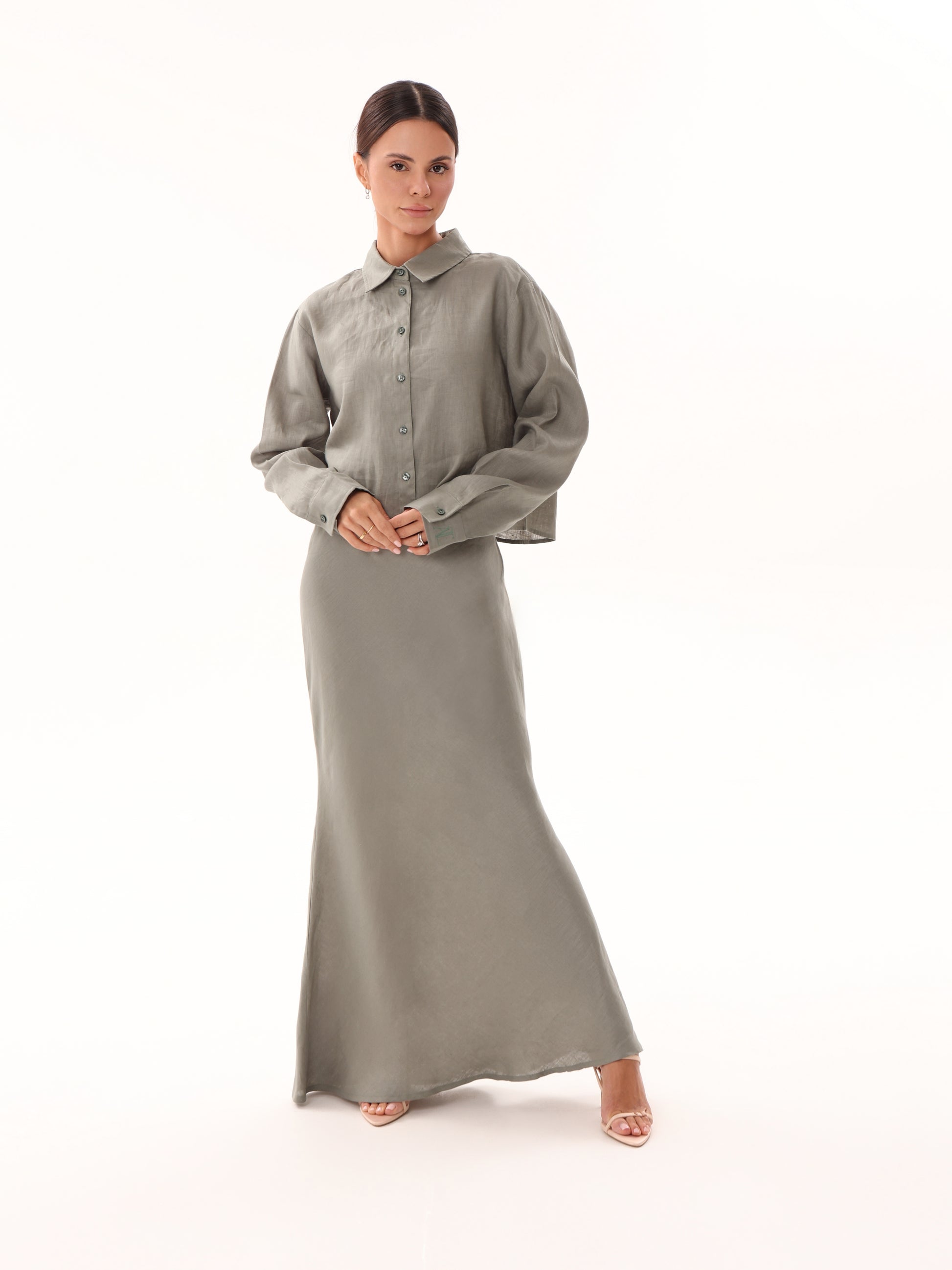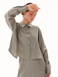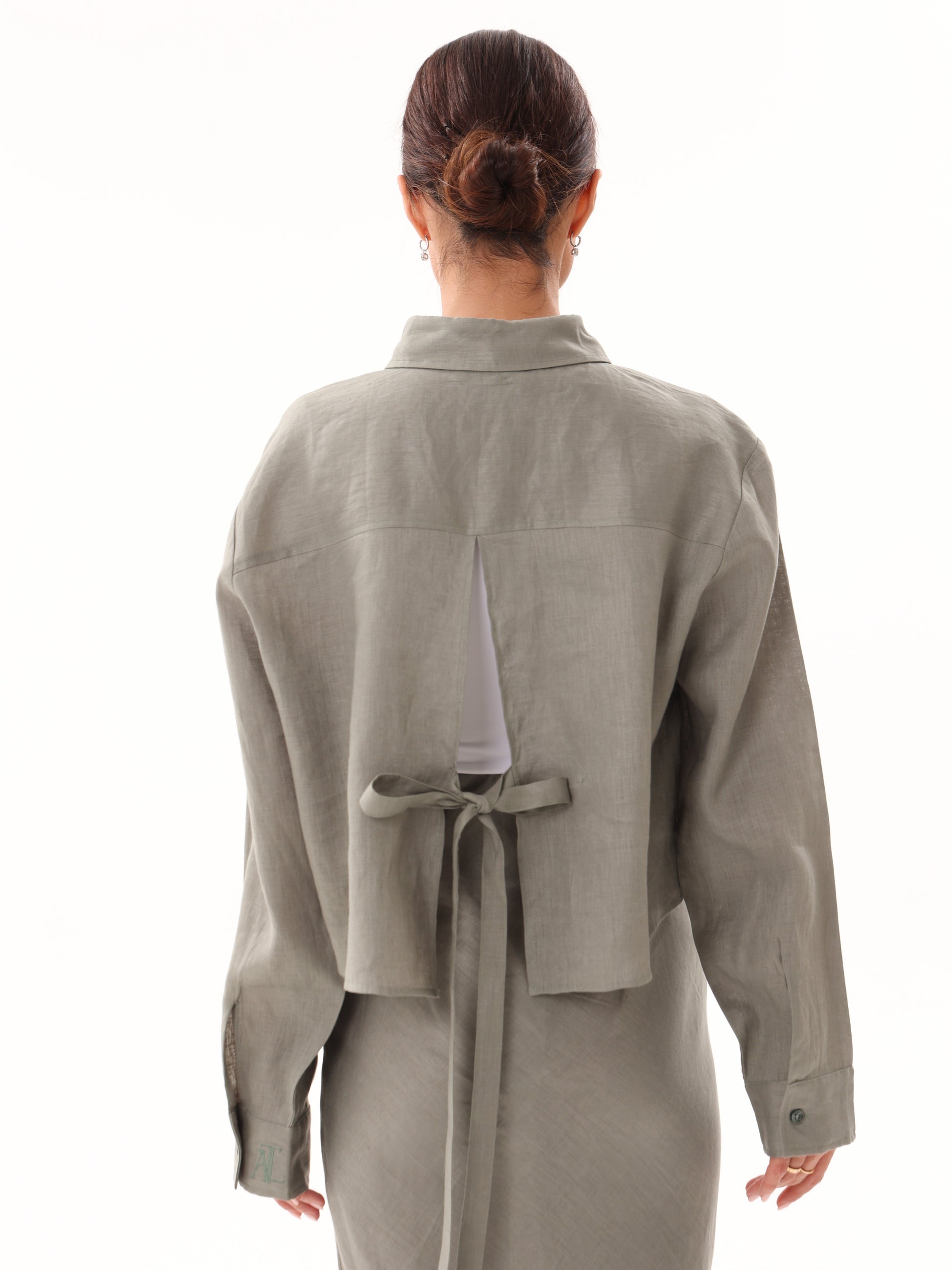 A trendy cropped button-up showcasing an open back with a long, elegant bow. Made from 100% linen, it is lightweight and breathable, making it ideal for warmer weather. Designed to layer beautifully over our linen underdress for a chic, modest look, or can be paired with our linen trousers or maxi skirts for a stylish ensemble. Either way, you’re sure to stand out.