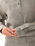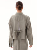 Linen Bow Tie Cropped Button Up-Olive