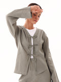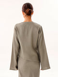 Linen Bow Tie Asymmetrical Open Top-Olive