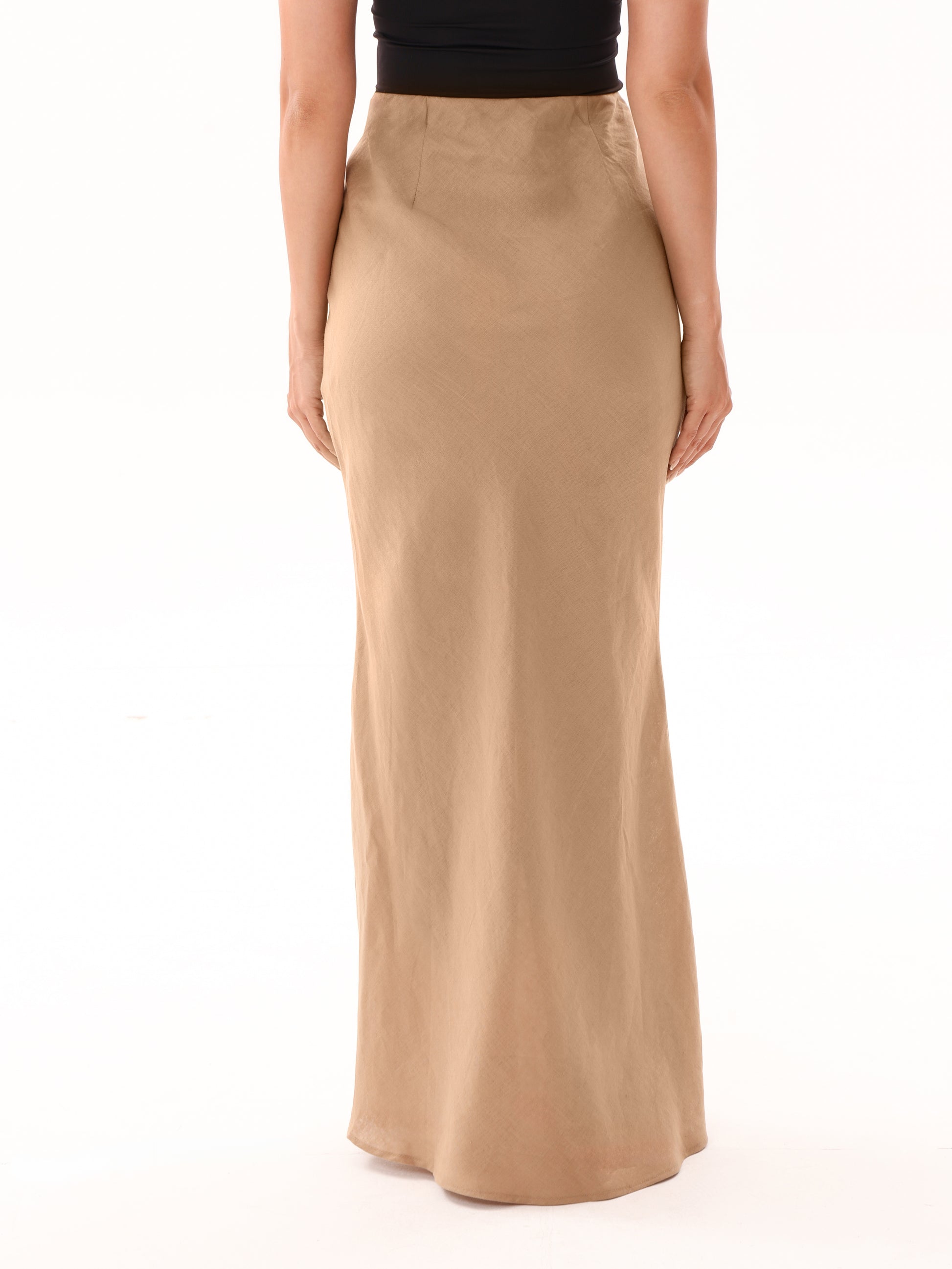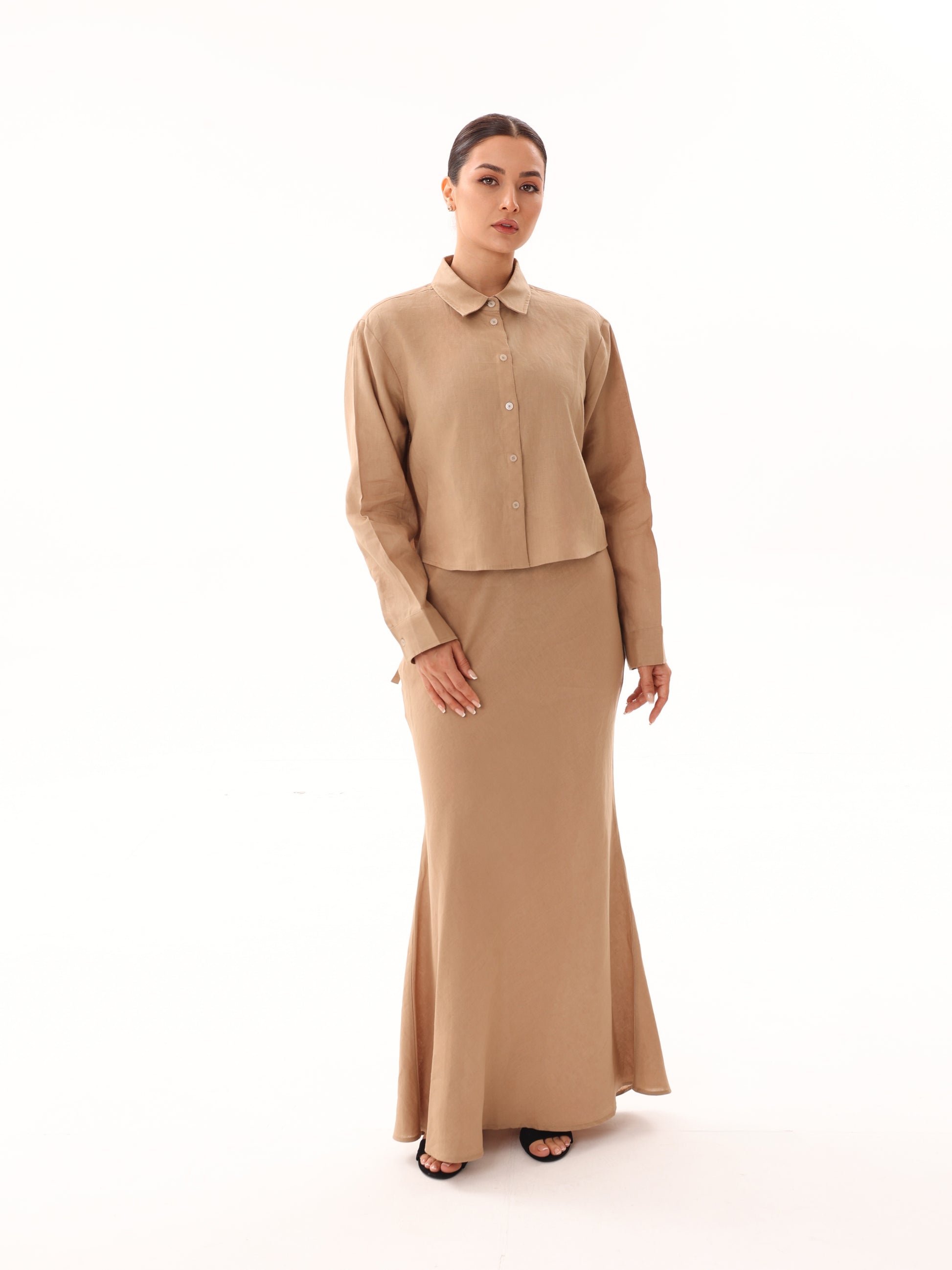 This sleek, linen maxi skirt offers a modest, form-flattering fit featuring a comfortable elastic waistband. Made from 100% pure linen, it is lightweight and breathable, ideal for warmer weather. Effortlessly stylish, this skirt pairs beautifully with any top or abaya from our Linen Bow Tie Line, allowing for endless chic combinations.